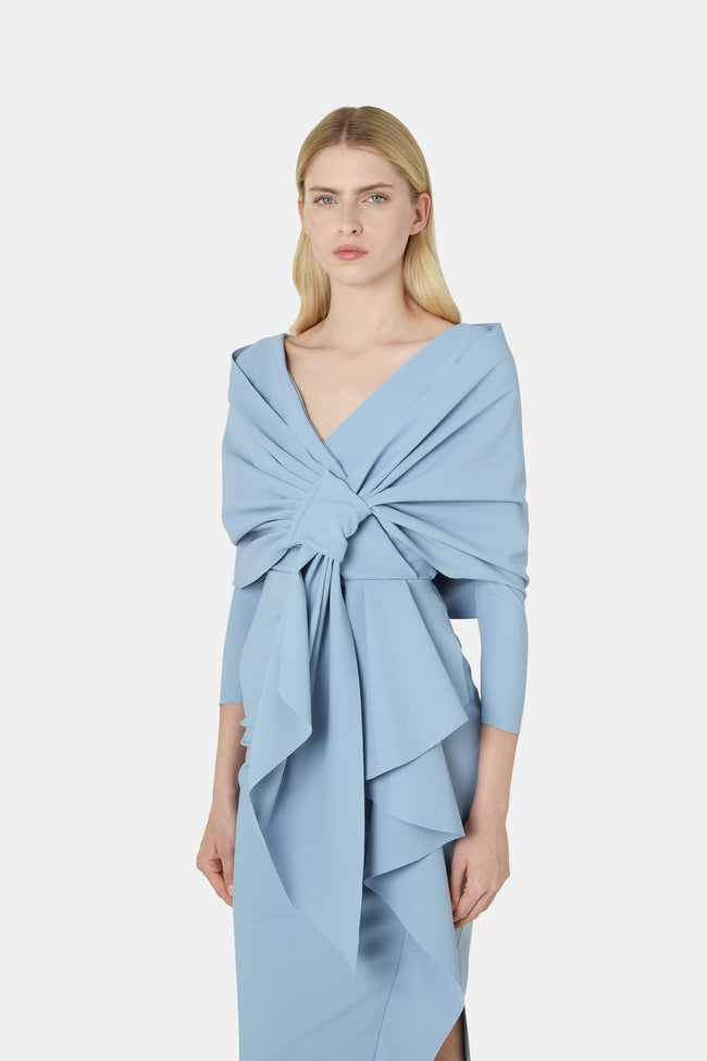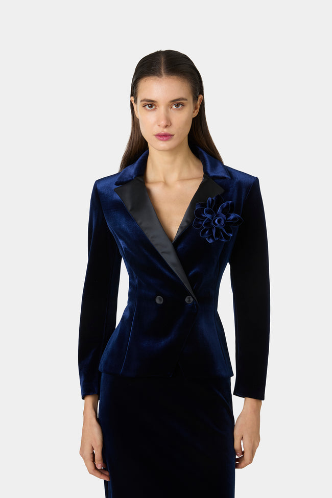 A selections of accessories, made in the iconic Brand fabric, like brooches and stoles complete the look.