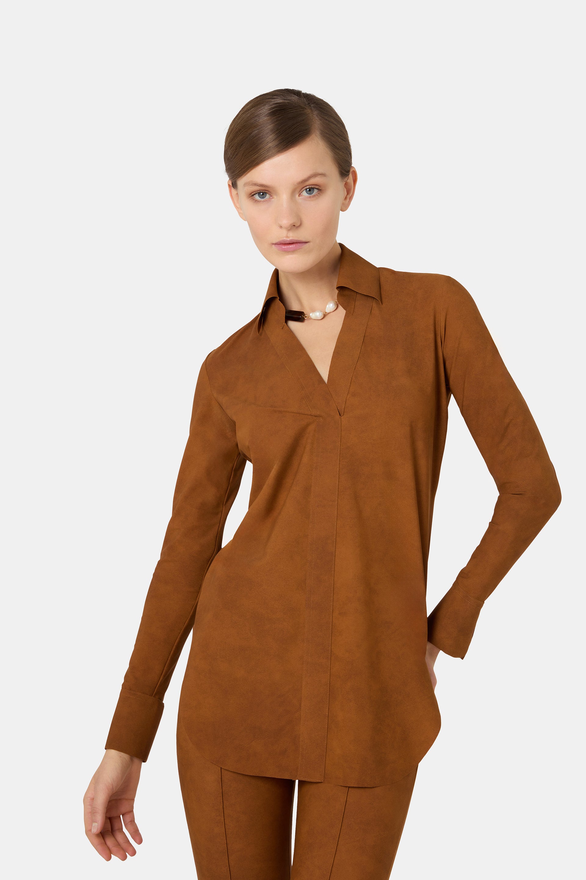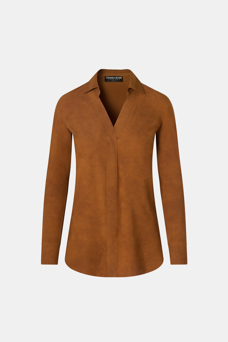 The most iconic of icons. The Atena shirt is a timeless classic in the CHIARA BONI collections. A must-have in every color shade, especially in the new suede version.