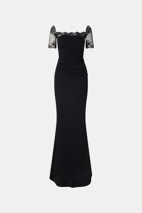 The Gonno style is a gown that boasts a sophisticated and elegant design. The neckline with bared shoulders and sleeves create refined lines that slim the silhouette.