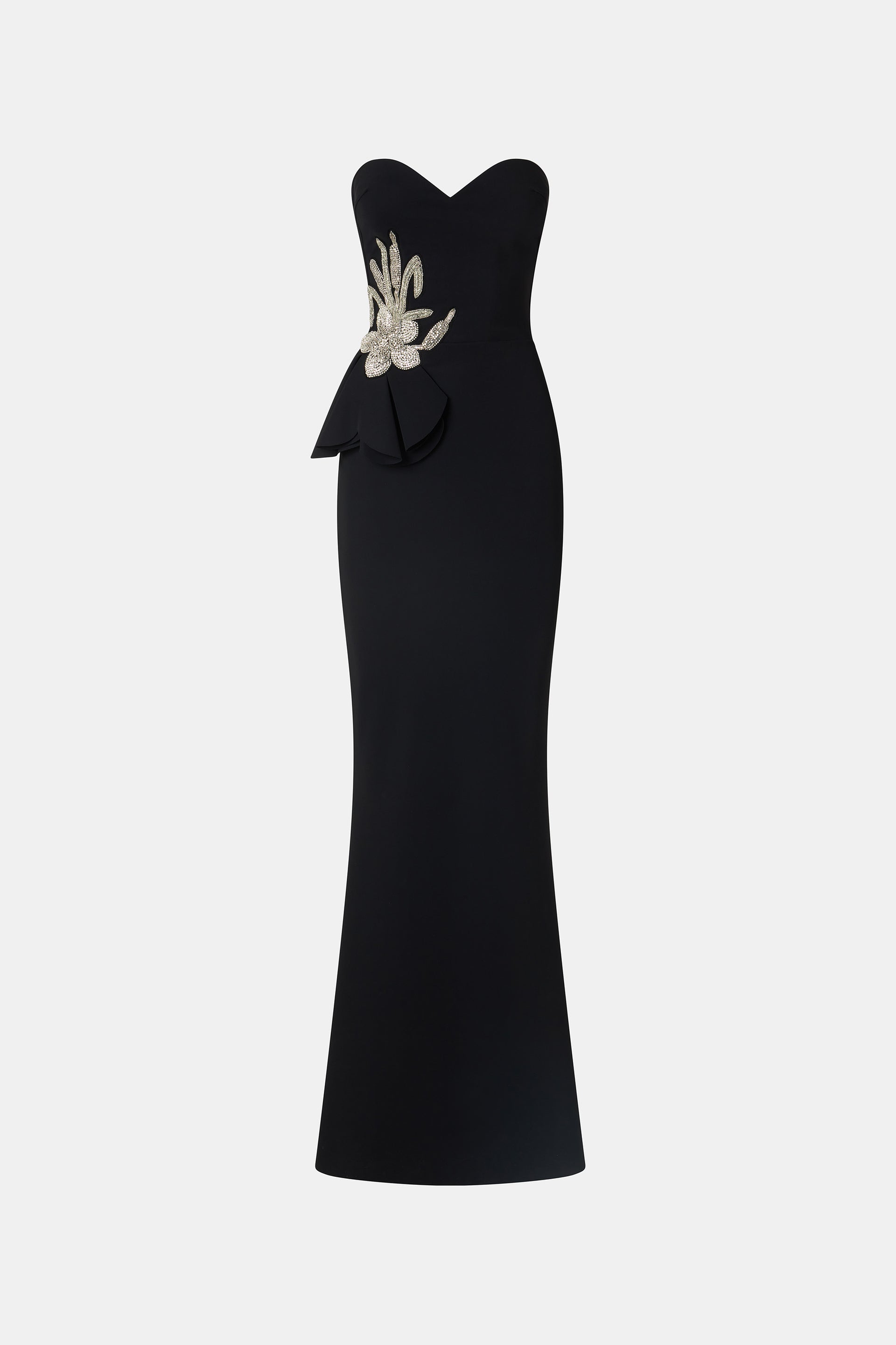 - Sweetheart neckline with bare shoulder detailing