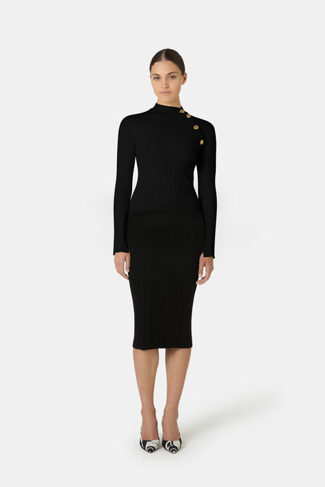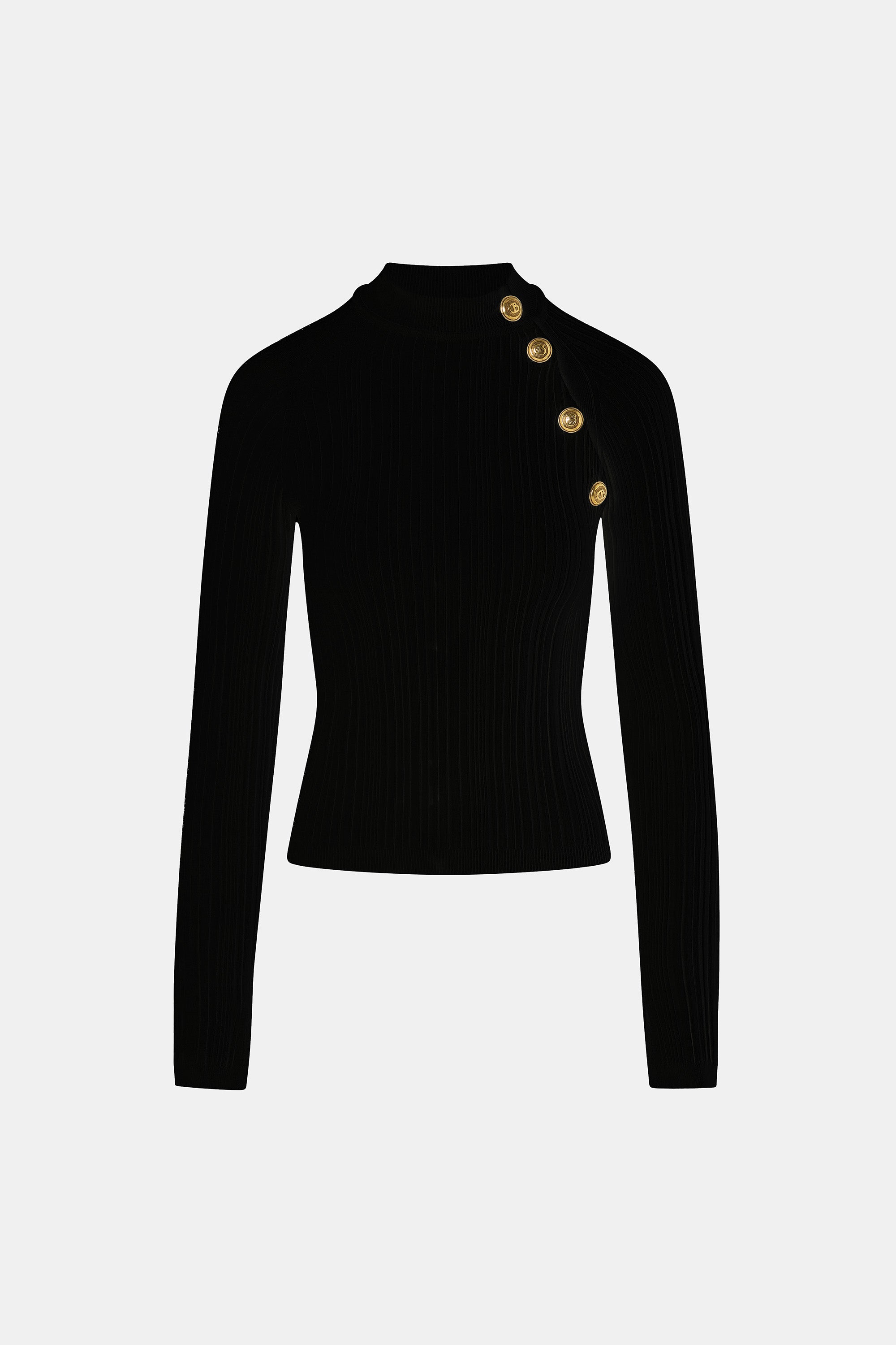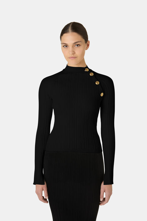 - High-neck knit sweater