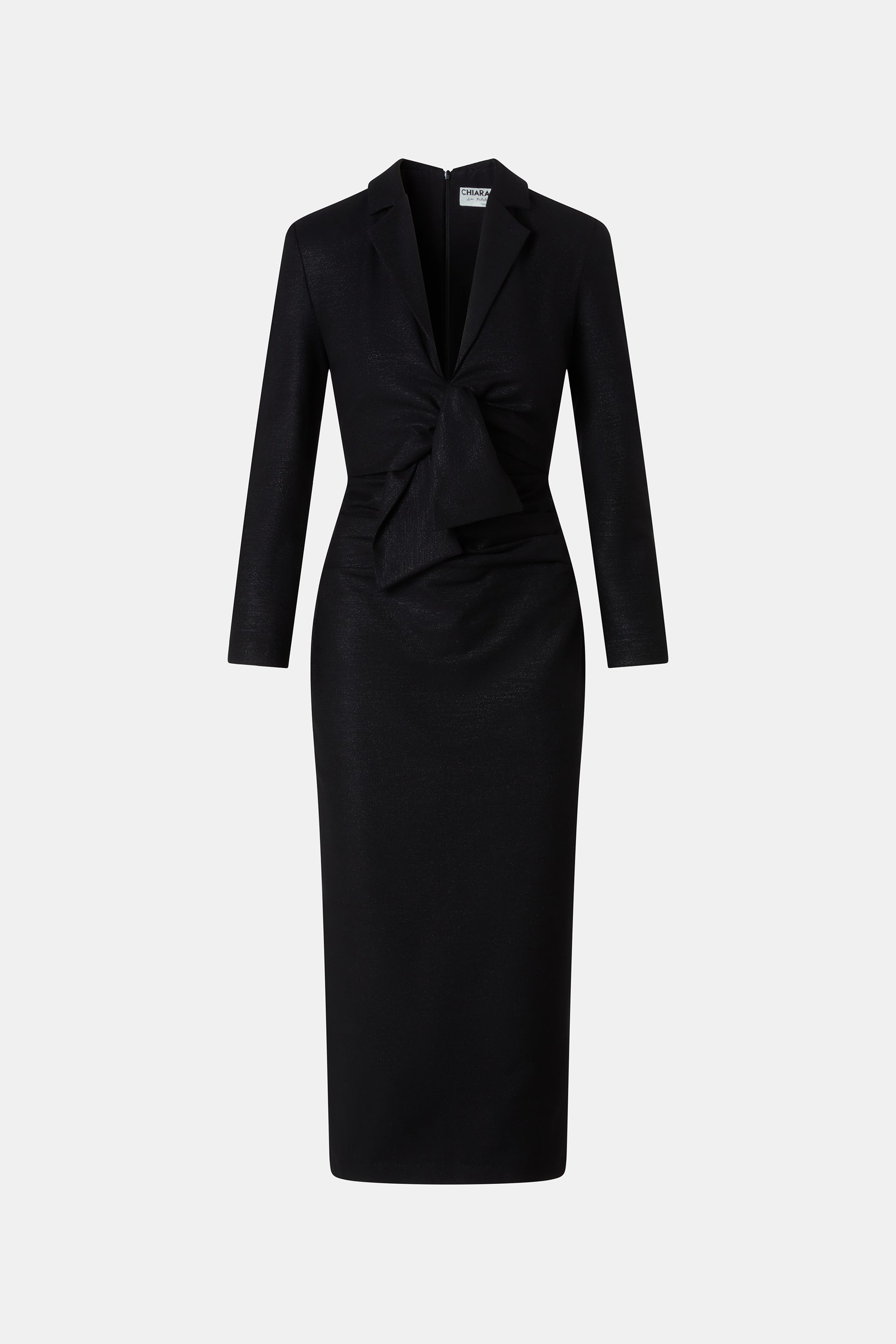 The Janbres dress embodies modern elegance with a classic soul. Crafted from wool, it features a defined silhouette that flows gracefully below the knee, enhancing the figure with subtle femininity. The shirt-style collar evokes tailored sophistication with a retro flair, while the bow at the neckline adds a romantic and refined touch. This dress is a chic must-have to embrace the season in style.