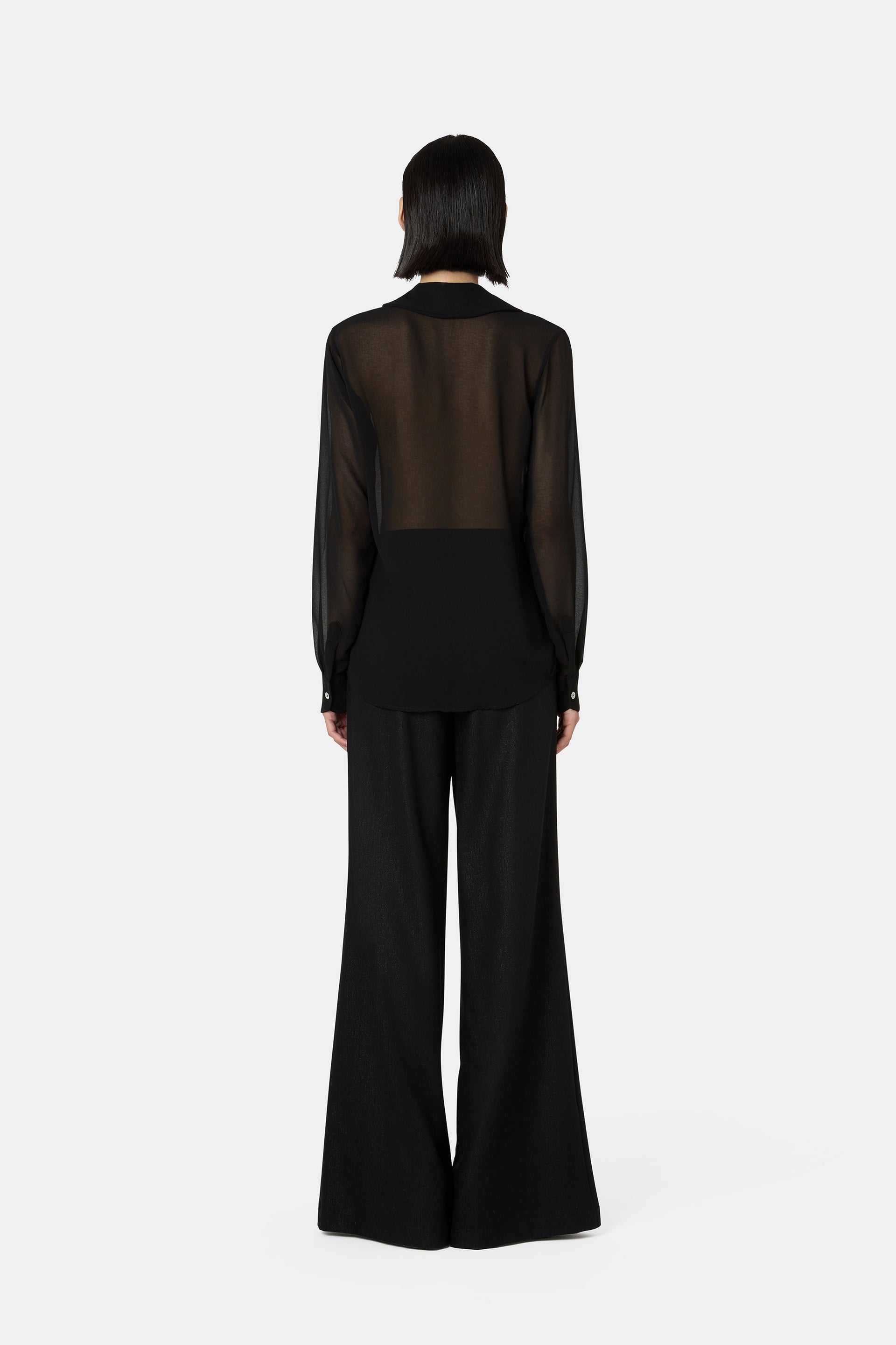 The Rottil shirt is an elegant and versatile piece, perfect for completing sophisticated looks or adding a refined touch to everyday outfits. Crafted from lightweight, semi-sheer fabric, it features a ruffle detail on the front that brings movement and femininity. The classic collar and solid fabric cuffs create a striking contrast with the shirt’s transparency. Ideal to pair with tailored trousers or skirts for both office and evening wear.