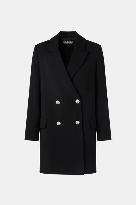 The Ecoply jacket is an oversize double-breasted style embellished with four bejeweled buttons. The oversize fit and length make this jacket versatile, so you can also wear it as a blazer dress. Ideal for creating formal looks, for evening events or elegant work outfits.