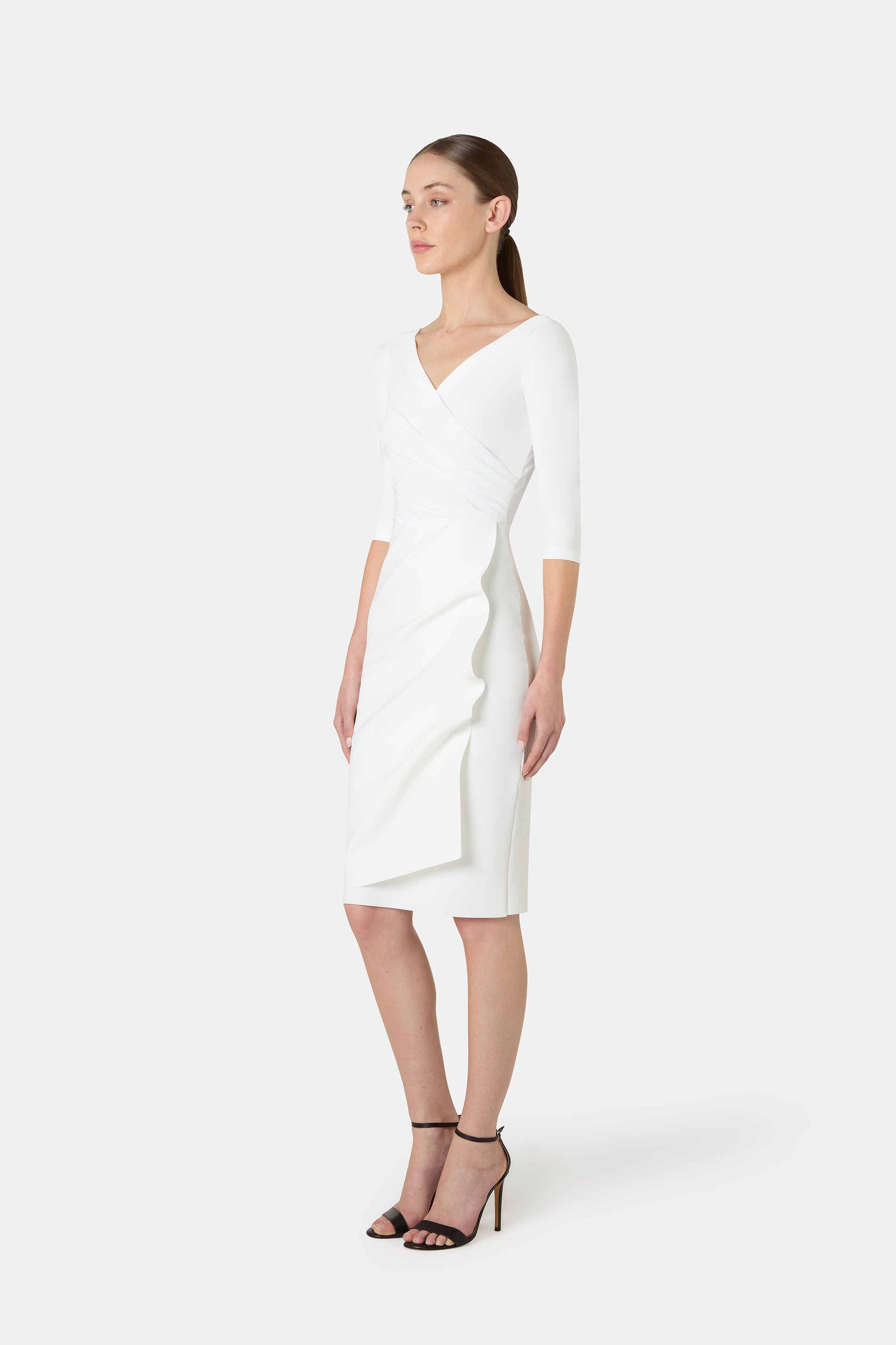 A CHIARA BONI signature - the Florien dress is a look that is always perfectly polished. The artfully draped skirt adds a stylish design element. This effortless cocktail dress can be dressed up or down with the choice of accessories.