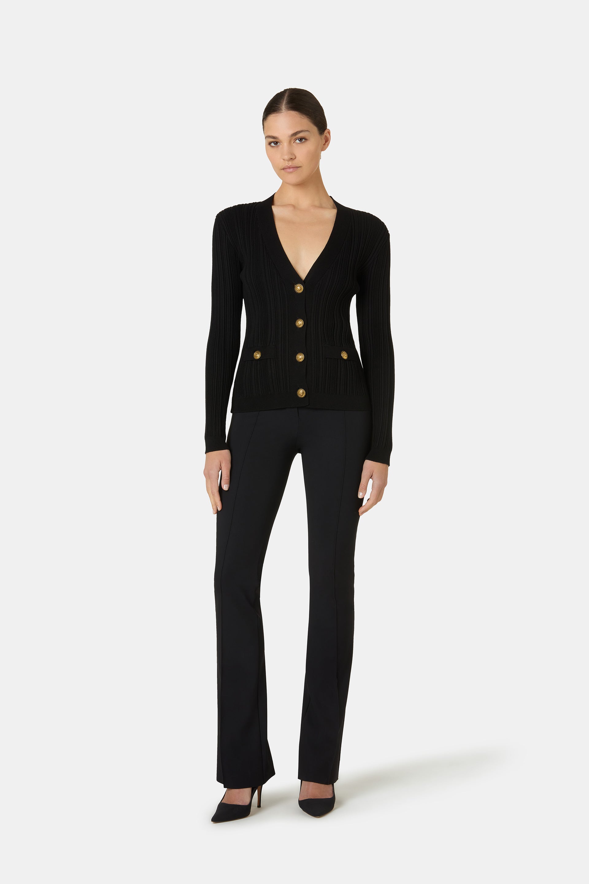 The new arrival of the season is knitwear. The Neky cardigan is sure to become a real must-have in your closet. Perfect for creating numerous looks, it can be paired with the matching skirt or pants from the collection.