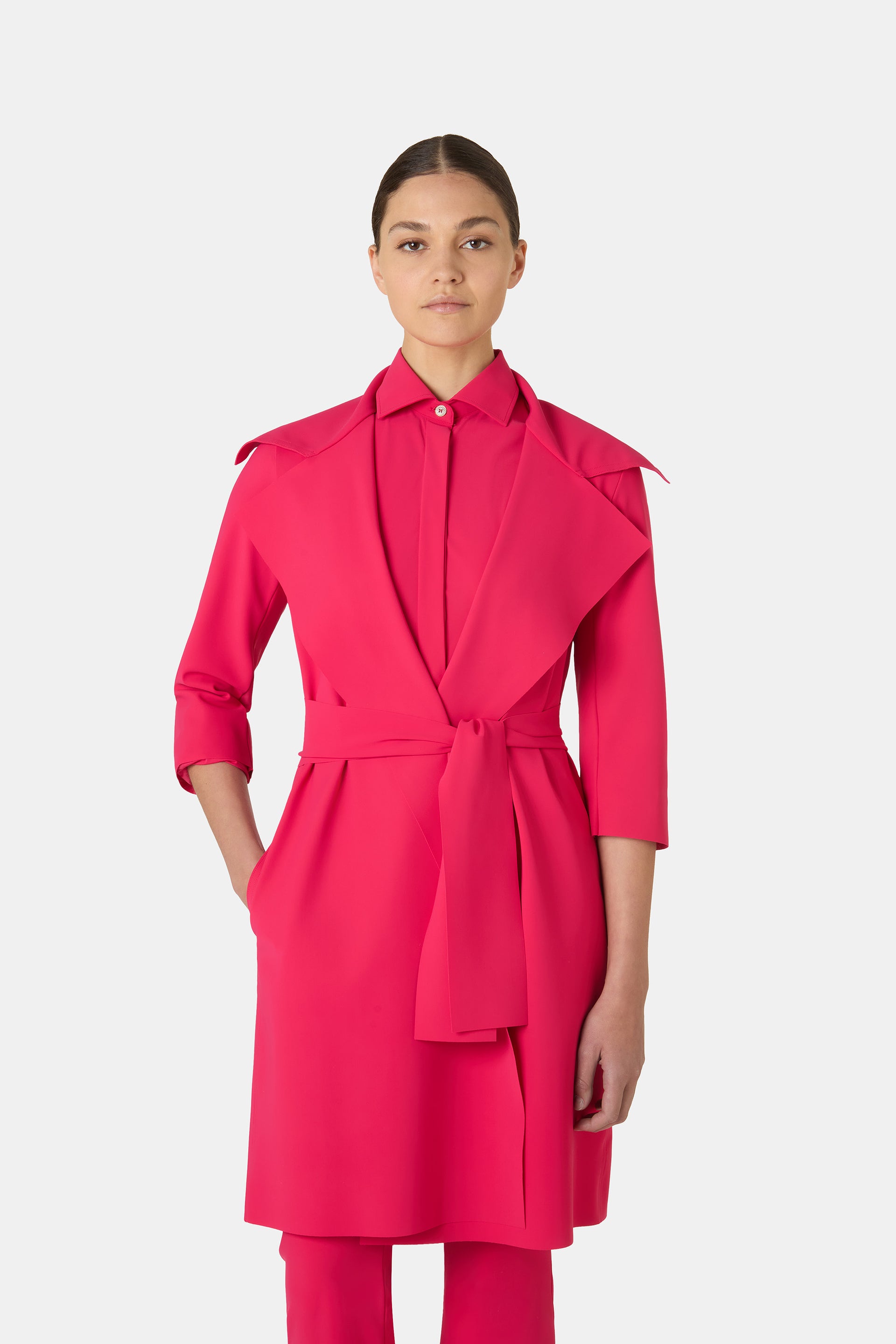 Lo spolverino Saveria è un alleato di stile, perfetto per affrontare ogni stagione. Da indossare avvolgente con la cintura stretta in vita oppure aperto per un effetto più fluido.