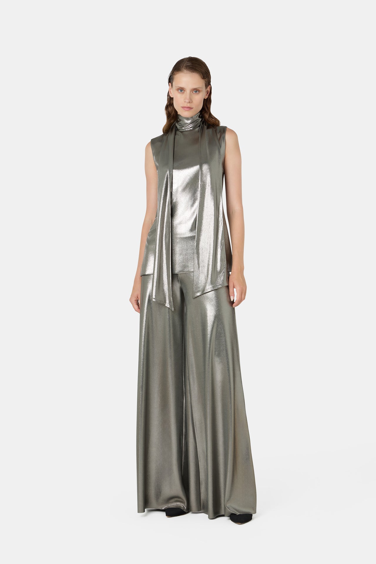 La collezione Autunno/Inverno 2025 di CHIARA BONI La Petite Robe celebra un’eleganza discreta e versatile ispirata agli anni Settanta, con silhouette avvolgenti e tessuti preziosi come raso, velluto, lurex e paillettes. La palette cromatica richiama tonalità profonde e retrò, mentre le stampe floreali dipinte a mano e i dettagli come fiocchi, fiori 3D e ricami gioiello esaltano la femminilità. Completano la proposta accessori raffinati e maglieria in cachemire e bouclé, per un look glam e sofisticato.