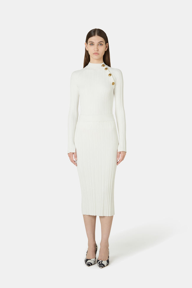 Rispondendo alle molteplici esigenze delle donne di oggi, CHIARA BONI La Petite Robe amplia la sua offerta, sempre concepita per esaltare la silhouette femminile e donare grazia ed eleganza. L'atmosfera avvolgente della collezione Autunno/Inverno 2025 si ritrova anche nell'offerta di maglieria, con maglioni e abiti in soffici mischie di cachemire, ma anche modelli con effetto pizzo o texture bouclé, arricchiti da eleganti dettagli.