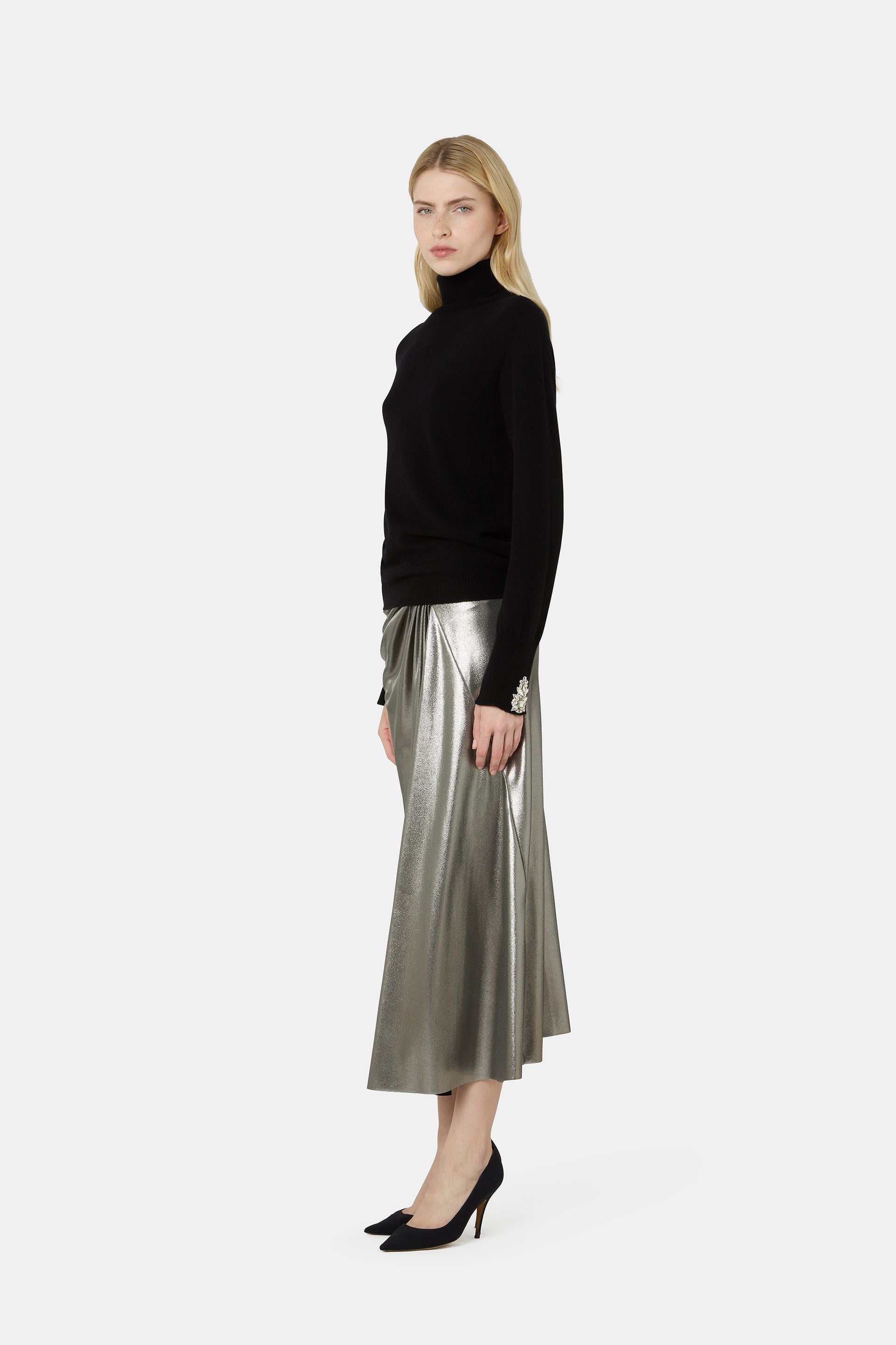 Una novità nelle collezioni CHIARA BONI: il maglione Graics, dal design semplice ma elegante, con applicazione gioiello sui polsi è un must-have per il tuo guardaroba invernale.