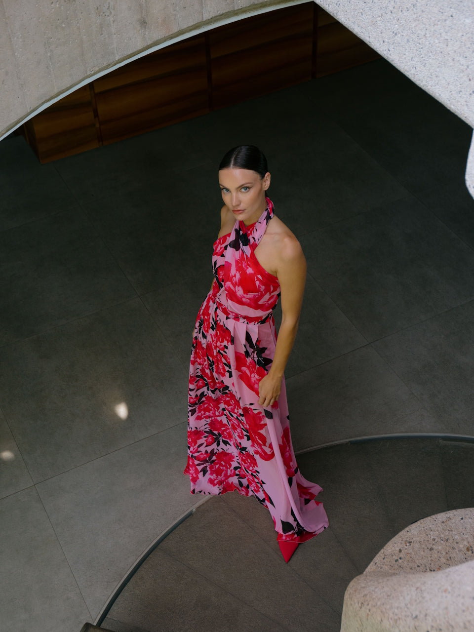 Labito lungo Wasa, realizzato in maglieria novità di collezione, è un modello elegante che si adatta a ogni occasione dal giorno alla sera. Il collo alto lo spacco sul lato aggiungono sensualità e valorizzano la figura mentre lapplicazione fiore, segno distintivo delle collezioni CHIARA BONI, aggiunge femminilità .