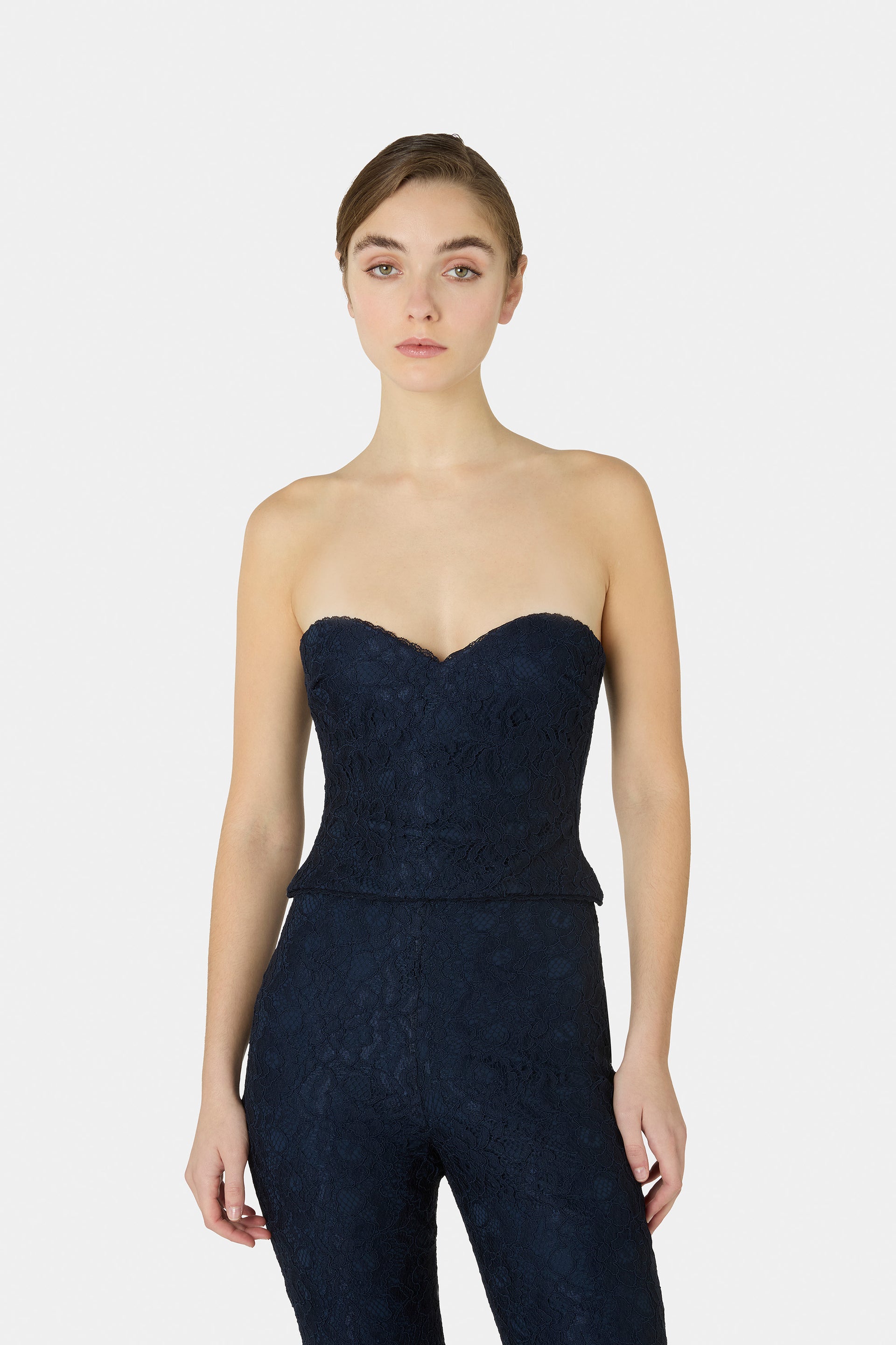 A CHIARA BONI icon reimagined in delicate lace: the Chrystele top features a sweetheart neckline that evokes retro-inspired sensuality with a modern allure.