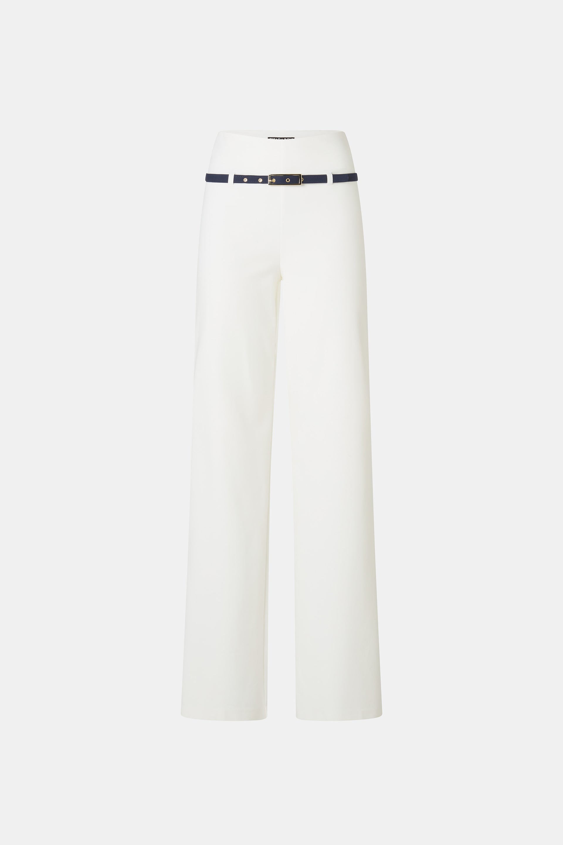 The high-waist Dorota pants with a waist-cinching belt and flared legs, a perfect balance of modernity and retro allure. Fresh, sophisticated, and effortlessly chic, they are the ultimate piece to complete a coordinated look with style and personality.