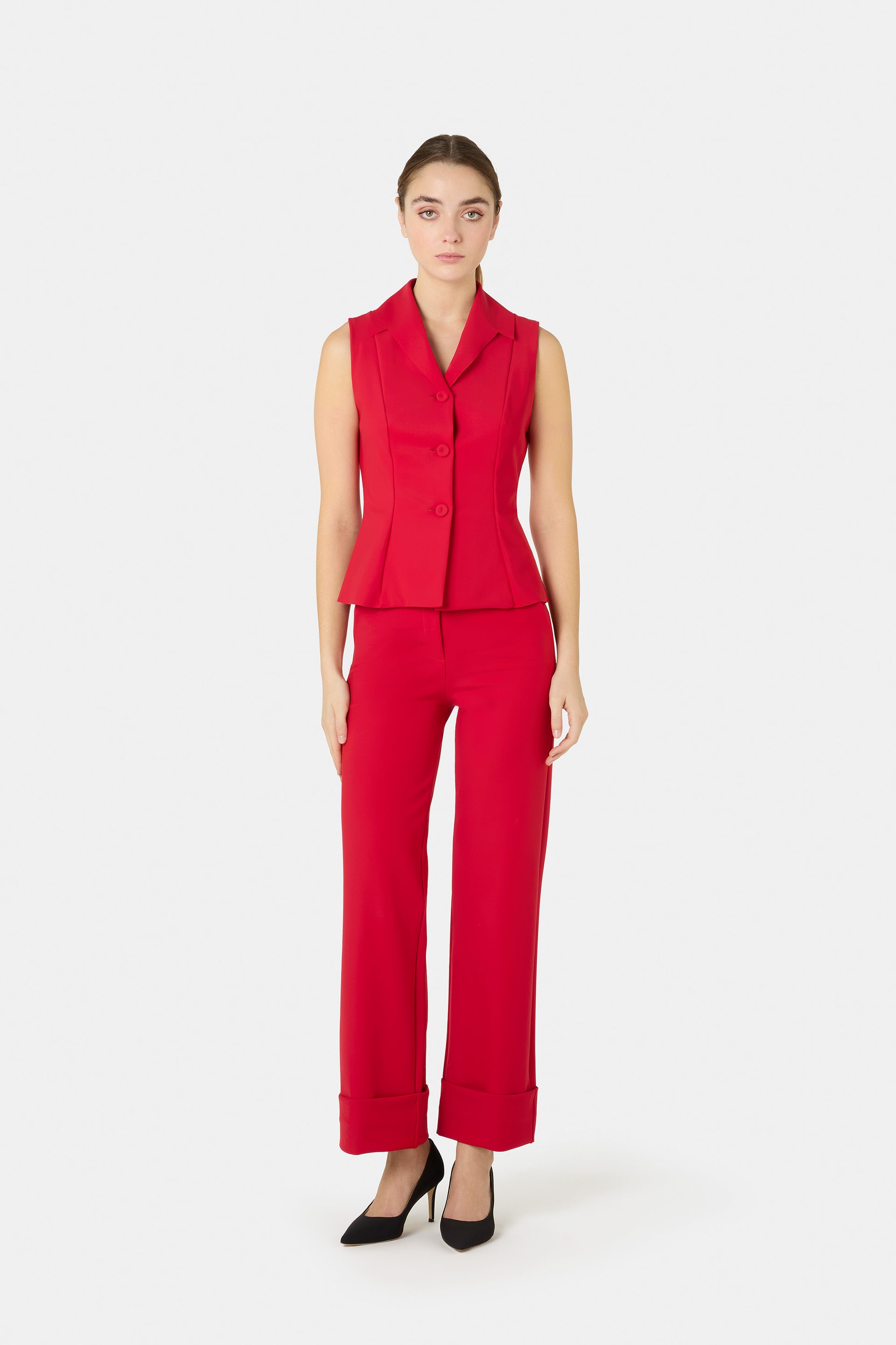 The CHIARA BONI Fredynah pants are an alternative to the classic skinny-fit pants. Comfortable and stylish, with a wide turn-up at the hem, they are perfect to pair with a matching item for a formal and elegant working outfit.