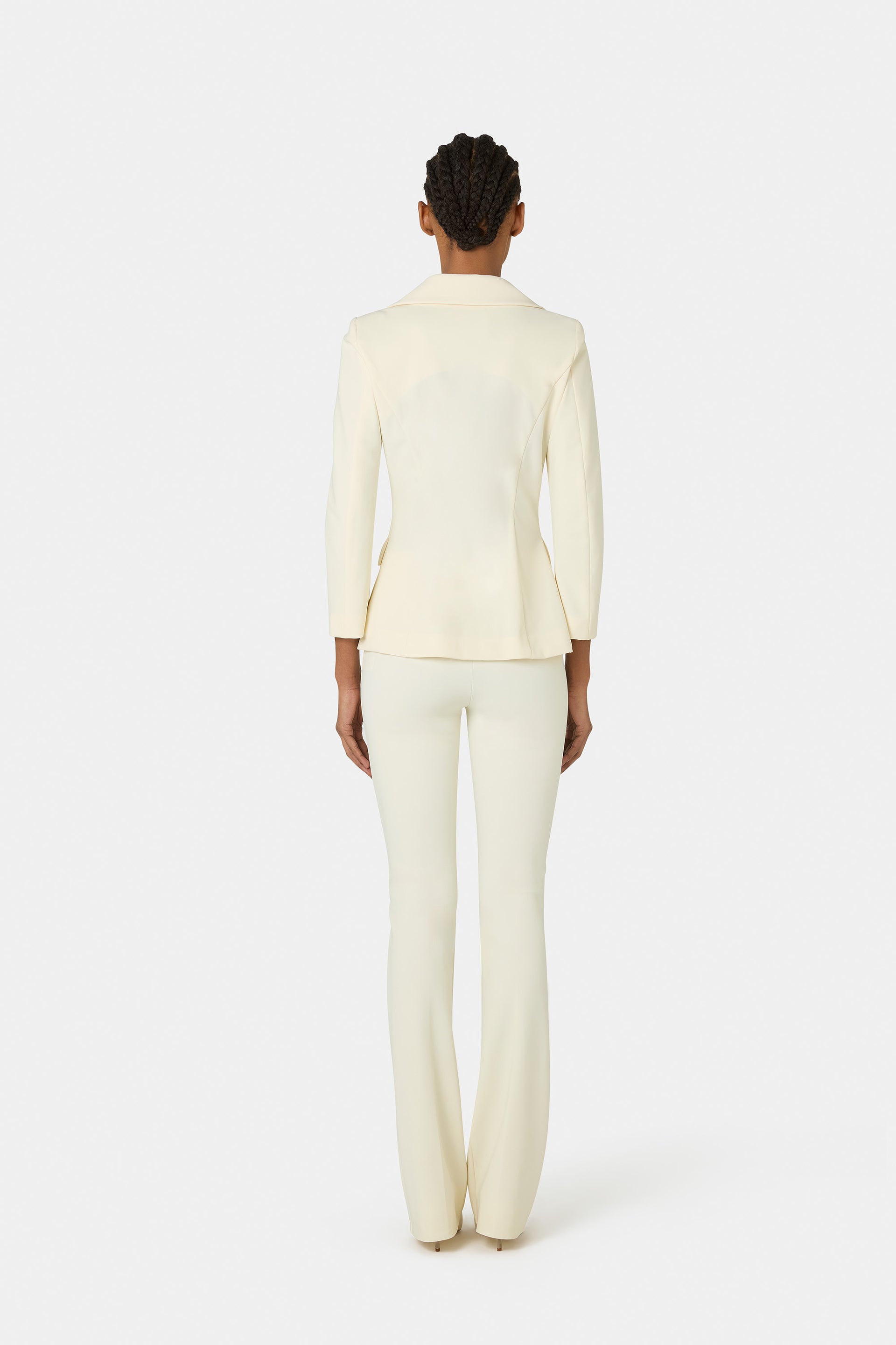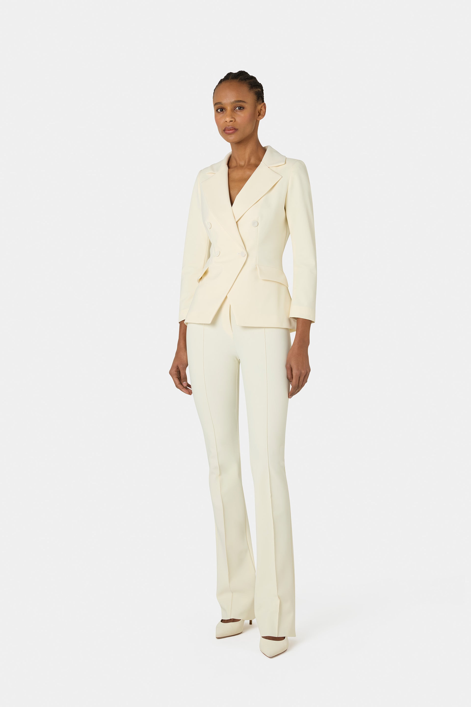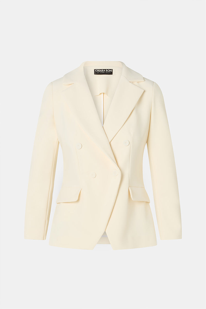 - Double-breasted design with lapels
