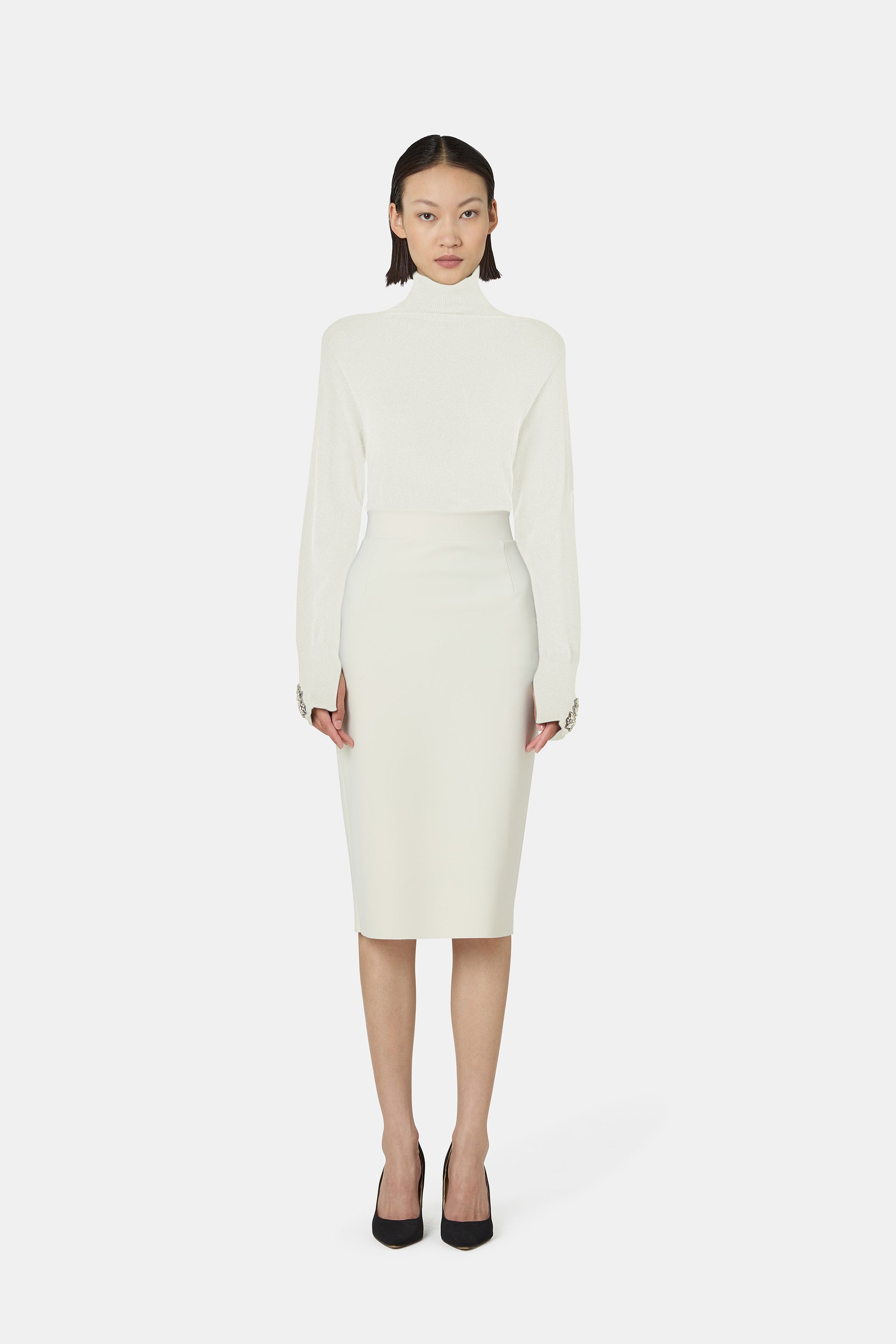 The CHIARA BONI's Lumi skirt is a pencil skirt with a perfect fit, crafted in our comfortable signature jersey with a hint of stretch. This midi-length pencil skirt makes a feminine statement in every variant.