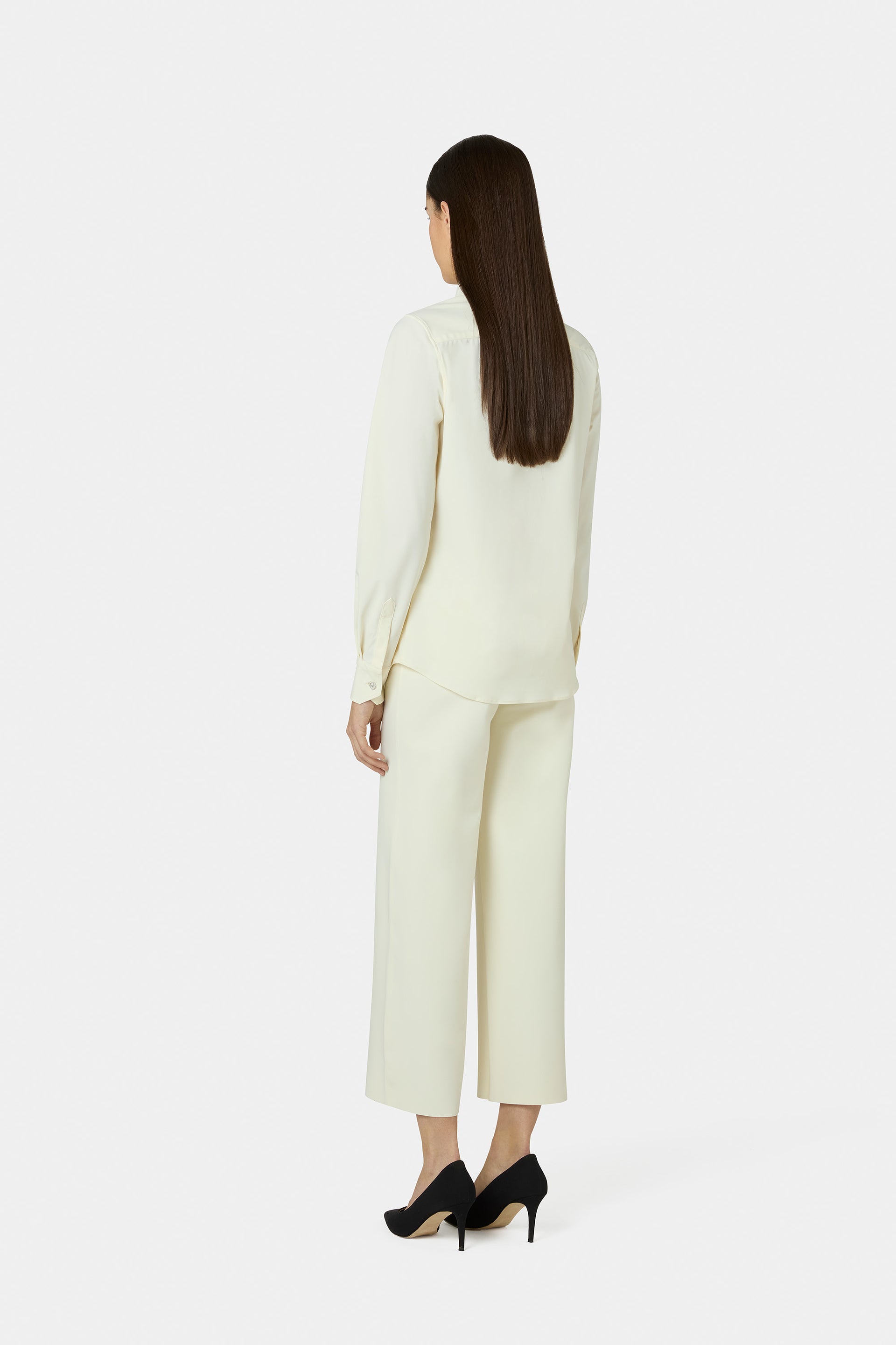 The Rosy shirt is a versatile and classy piece that offers exceptional comfort and impeccable fit. Its classic button collar and concealed button placket make it perfect for creating formal looks or everyday outfits when paired with collection skirts and trousers. A must-have in every color variation.