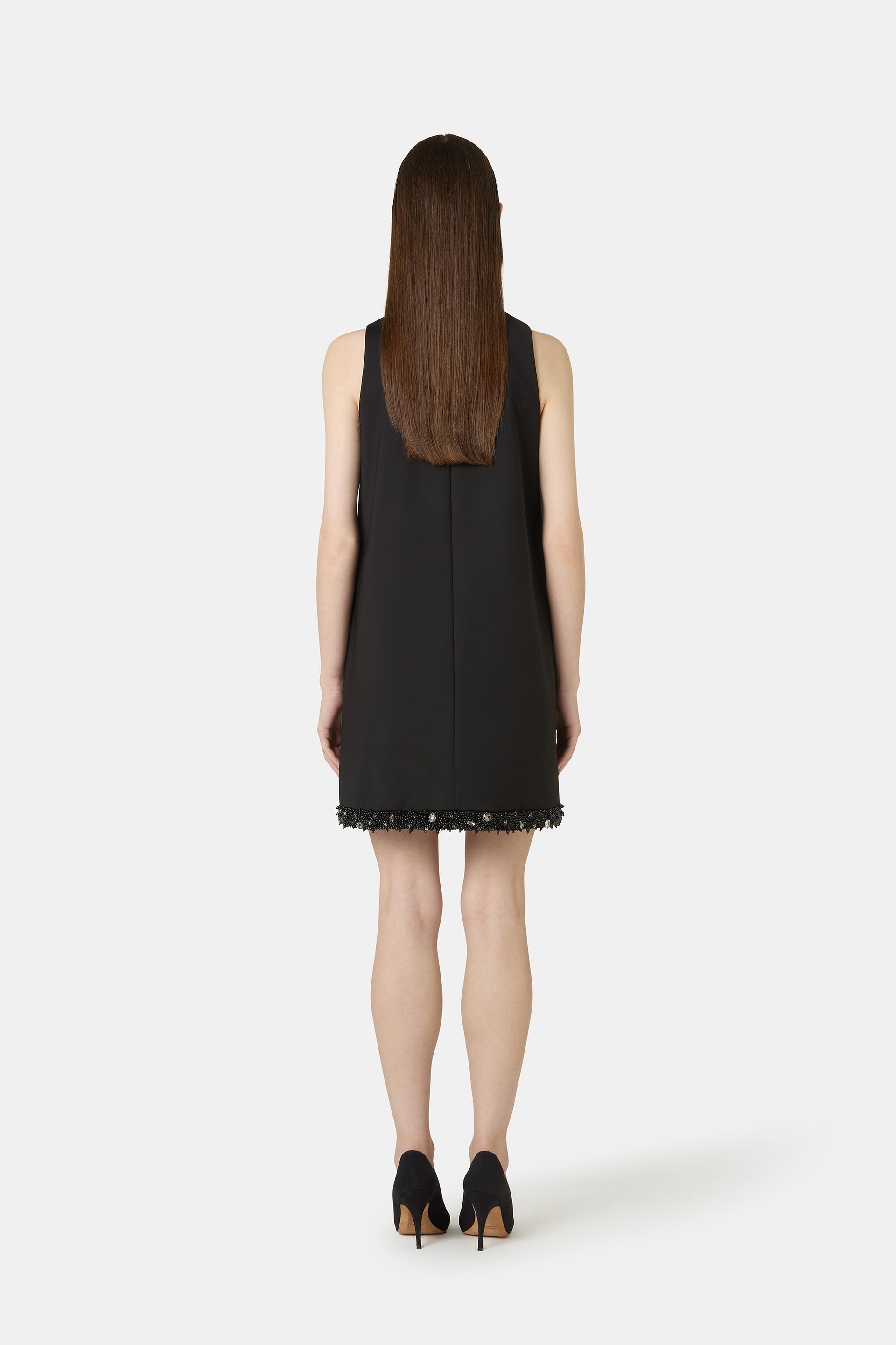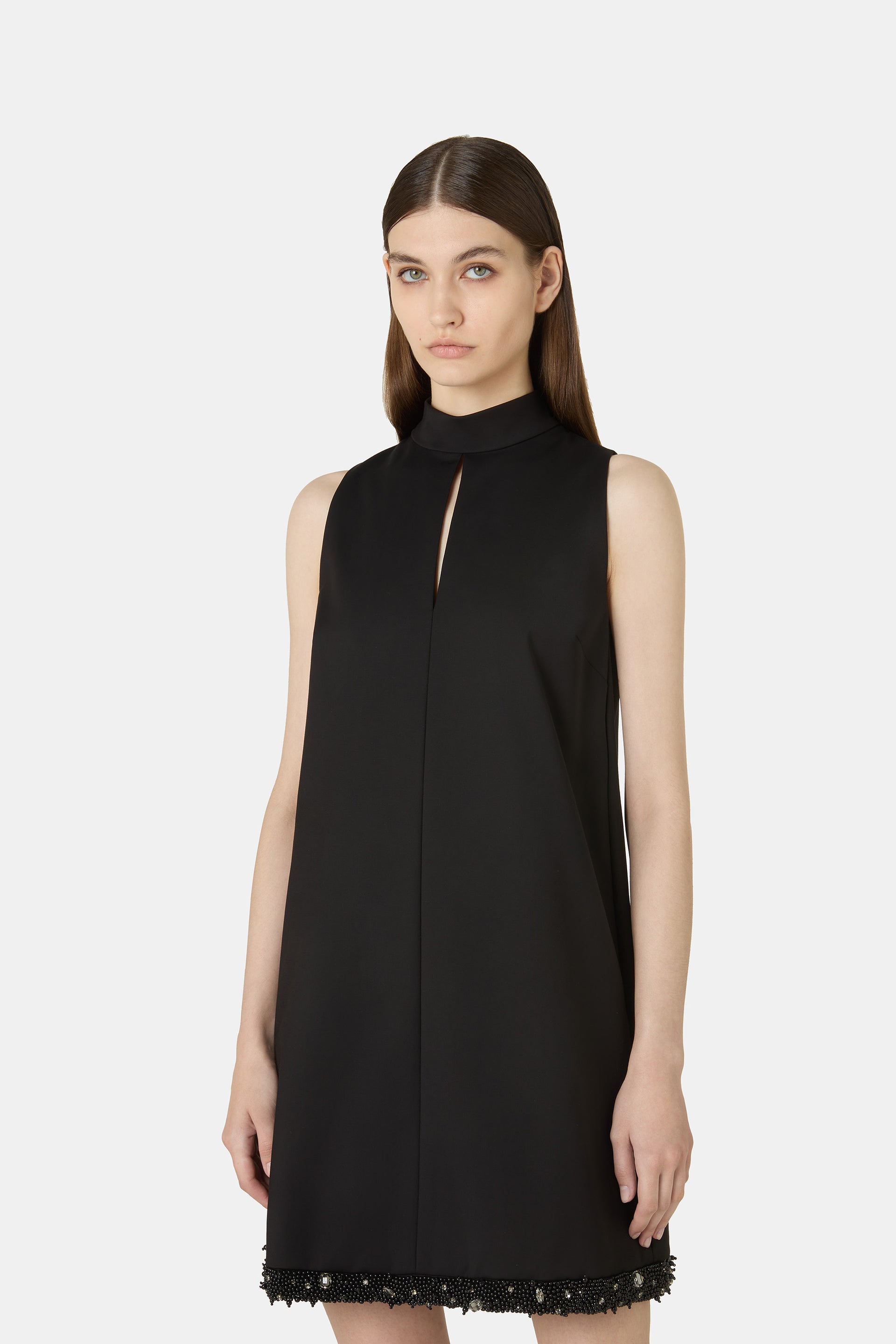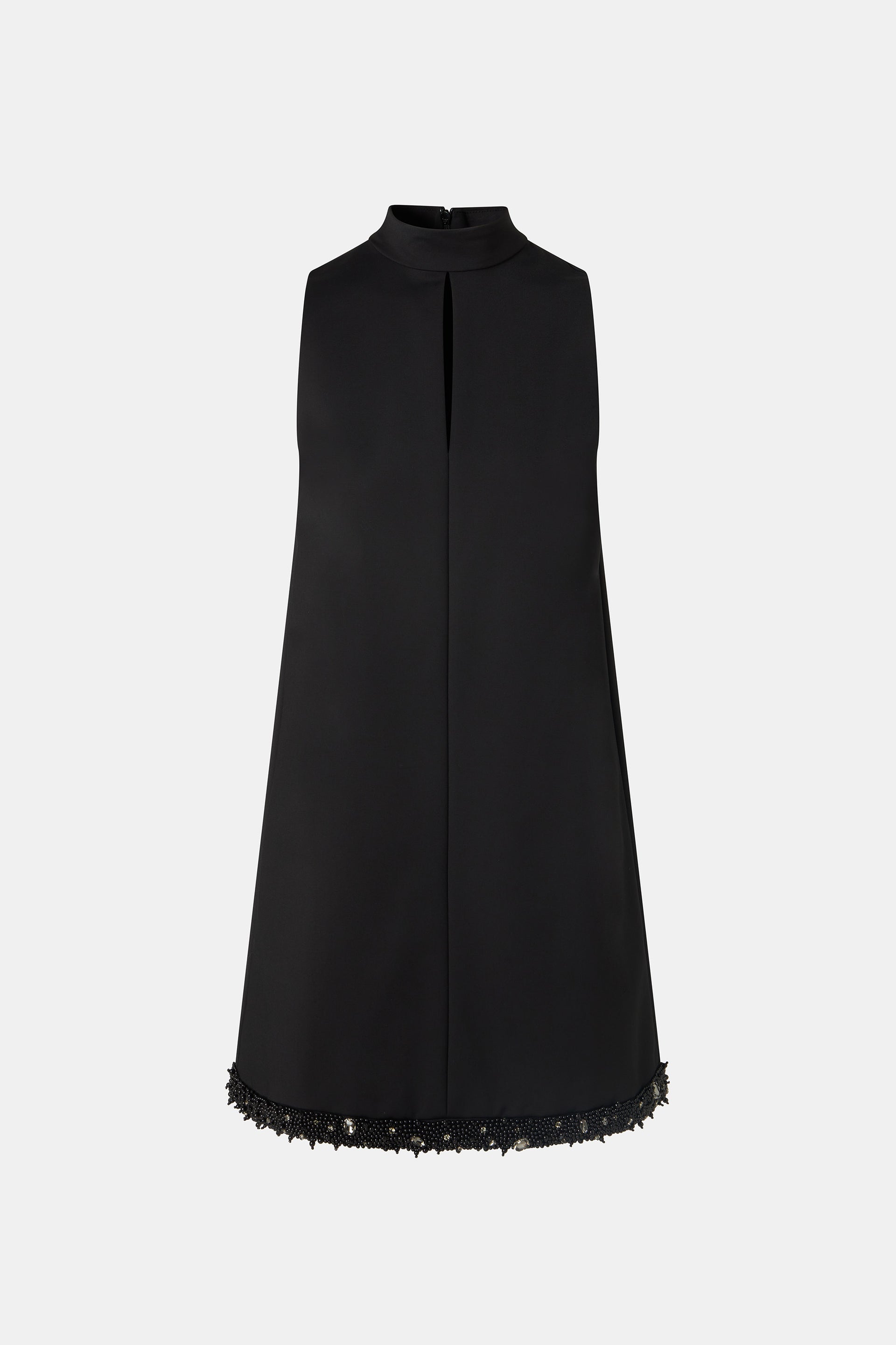 Elegant and modern, the Set short dress merges the bon-ton style of its A-line construction with contemporary details. The half-neck with teardrop cut-out enhances the neckline, while the beaded embellishment on the hem adds a fine and sophisticated touch.