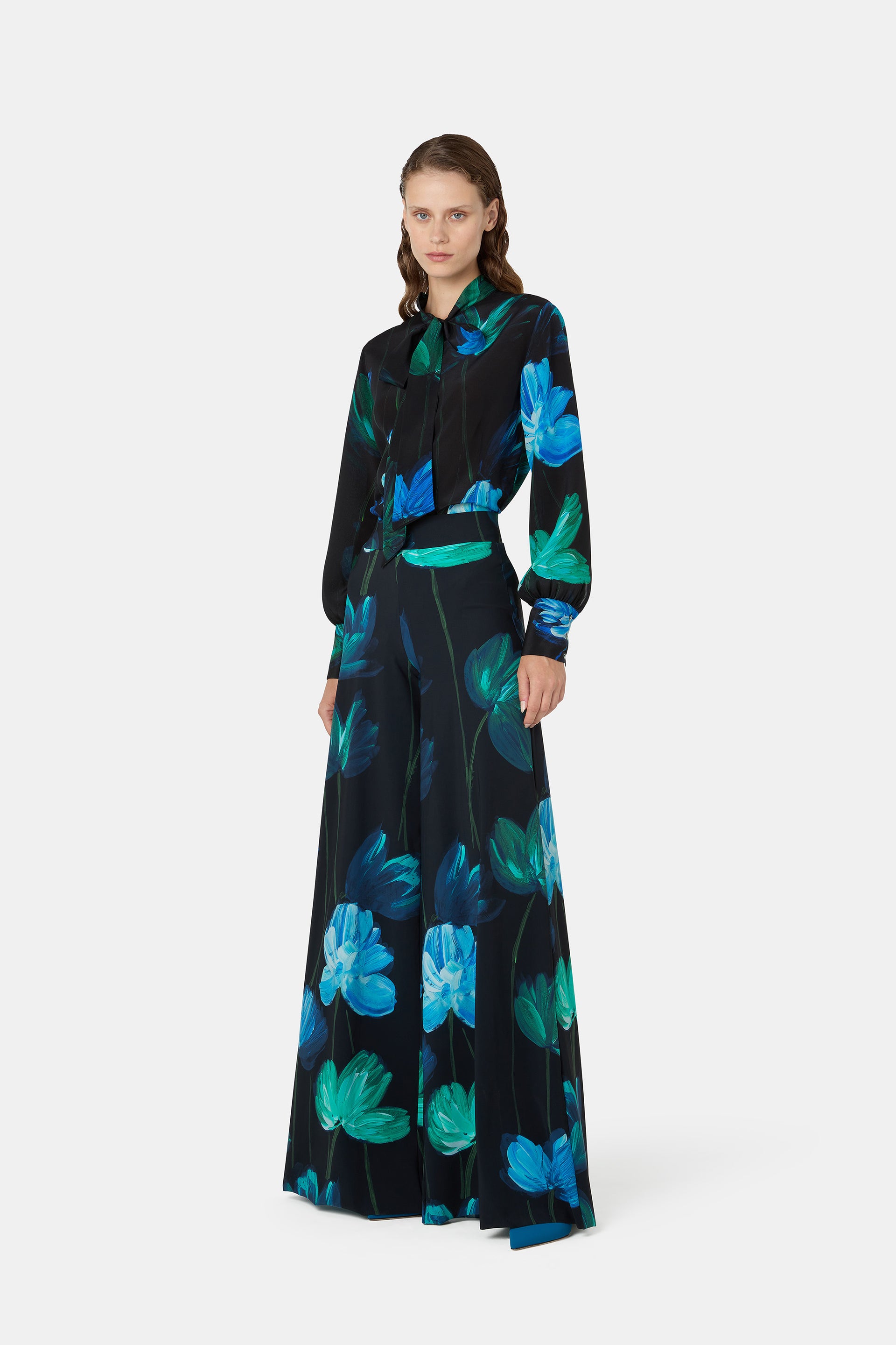 Cut from fluid stretch jersey, the Skyla pants are designed to sit high on the waist and have ultra-wide, flared hems. A must-have in every version.