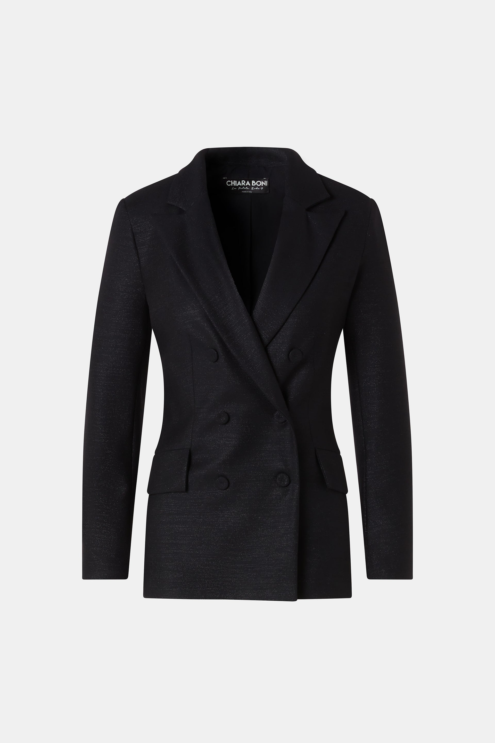 - Double-breasted fastening with four buttons